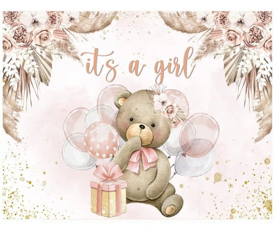 Pink Bear "It's a girl" backdrop