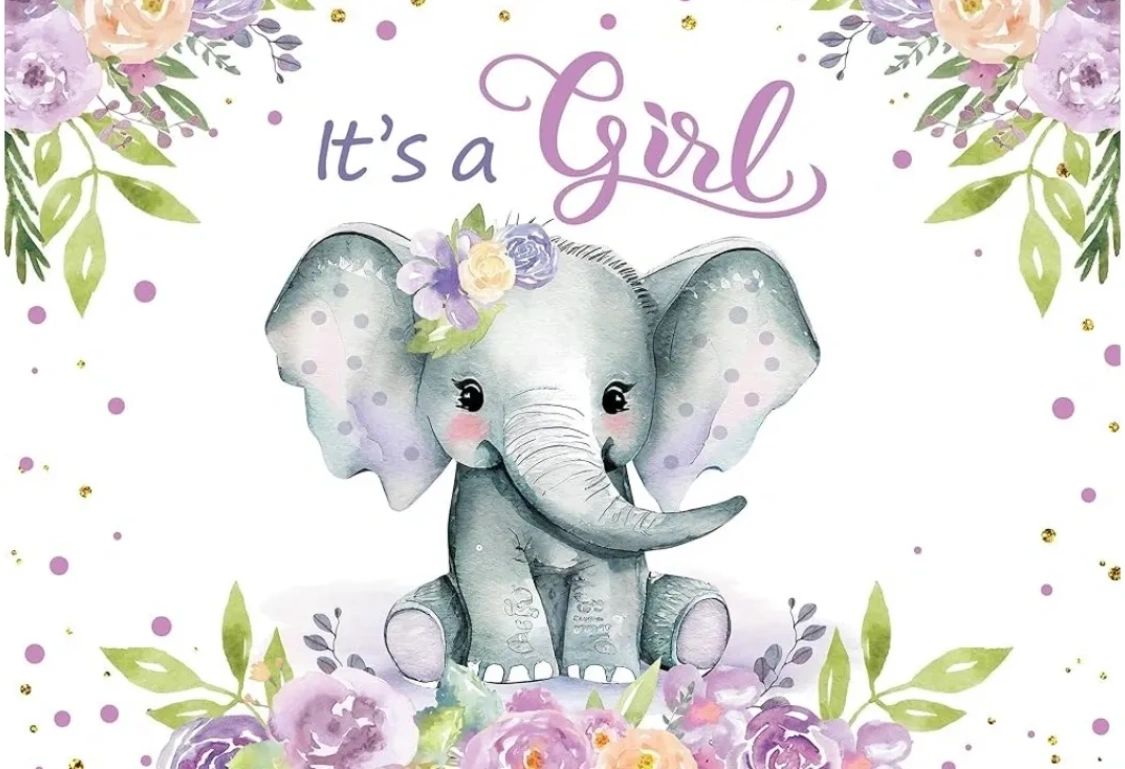 Lilac Elephant "It's a girl" backdrop