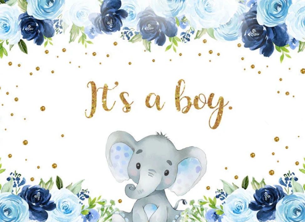 Blue Elephant "It's a boy" backdrop
